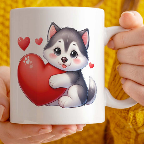 Valentine's Day Romantic Gift Mug | Optional Custom Text Field, 11oz Ceramic | Cute Husky Dog Design