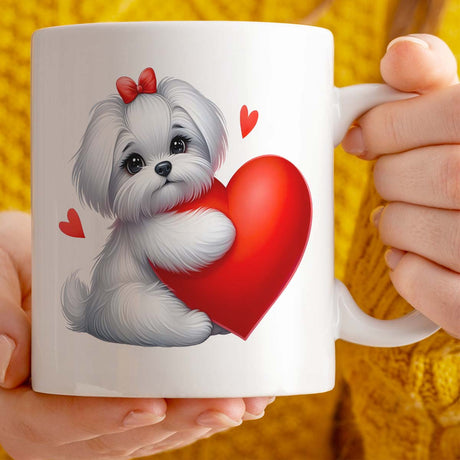 Valentine's Day Gift Mug | Optional Custom Text, 11oz Ceramic | Cute Maltese Dog Design