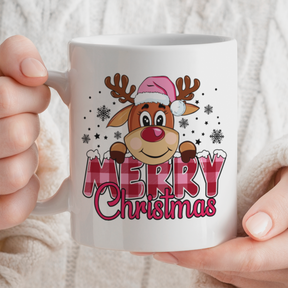 Pink Reindeer Christmas Gift Mug | 11oz Ceramic Mug Gift For Her